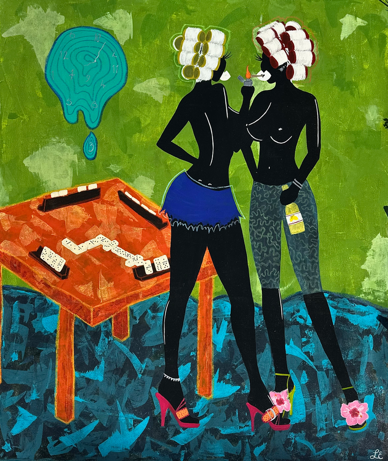 Drawing inspiration from a colourful upbringing at the intersection of Caribbean & African culture, alongside the masterful works of artists such as Frida Kahlo & more recently Kerry James Marshall, she forms a poignant exploration of the feminine experience.